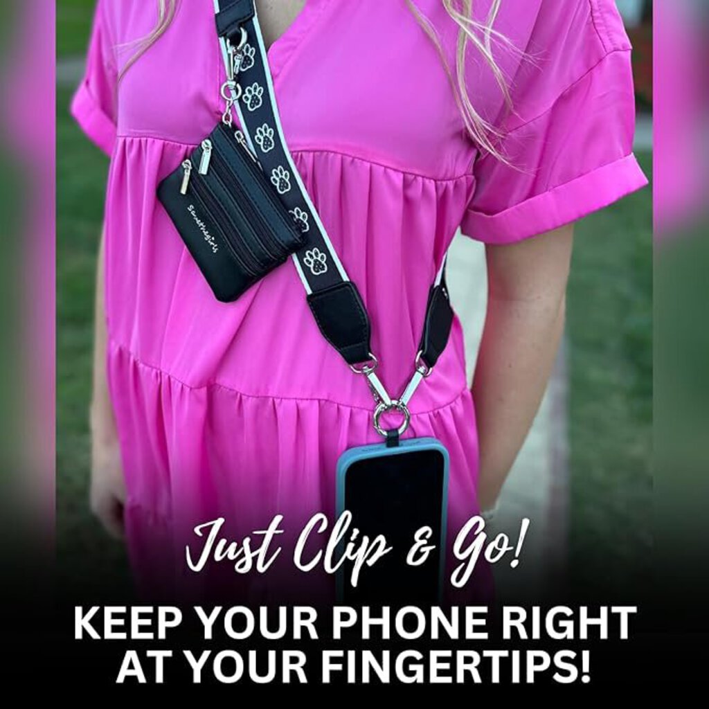 HE PERFECT CROSSBODY PHONE CASE FOR EVERY OCCASION, ANYTIME, ANYWHERE! – The phone strap crossbody is perfect for anyone who wants to stay hands-free while protecting their phone. This stylish accessory allows you to keep your device secure and easily accessible without the bulk of a big purse. Whether you’re enjoying a night out, or attending events, it provides a convenient way to carry your essentials. Say goodbye to the hassle of traditional bags and embrace the freedom of effortless style! CHIC AND COMFORTABLE: THE CLIP AND GO STRAP YOU’LL LOVE! – Its adjustable strap allows you to customize the fit, ranging from 40" to 61" long and 1.5" wide, making it a versatile accessory for any outfit. With a removable wristlet and a detachable pouch of 4.5"x3.5", you can easily organize your essentials. Whether you’re dressing up or keeping it casual, this cell phone crossbody bag adapts to your look effortlessly! YOUR ULTIMATE SOLUTION FOR KEEPING SMALL ITEMS SECURE AND ACCESSIBLE – The cell phone lanyard is the ideal solution for keeping your small items secure and accessible. Designed for convenience, it features a lightweight design that allows you to carry your essentials hands-free. Whether it’s your phone, keys, or credit cards, everything stays organized and within reach. These stylish phone accessories are perfect for on-the-go lifestyles, ensuring you never have to rummage through bags again. DESIGNED TO ACCOMMODATE MOST SMARTPHONES – The clip and go strap for phone with wallet crossbody is designed for functionality, making it compatible with most smartphones. Its innovative phone card insert simplifies organization—just insert your card into your phone case, slide your phone into the strap, and you're ready to go. Enjoy the freedom of hands-free convenience without sacrificing style, making it the perfect accessory for any occasion!