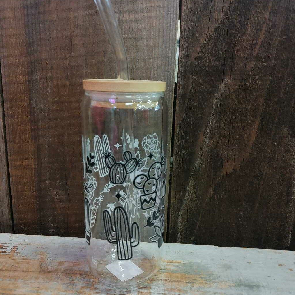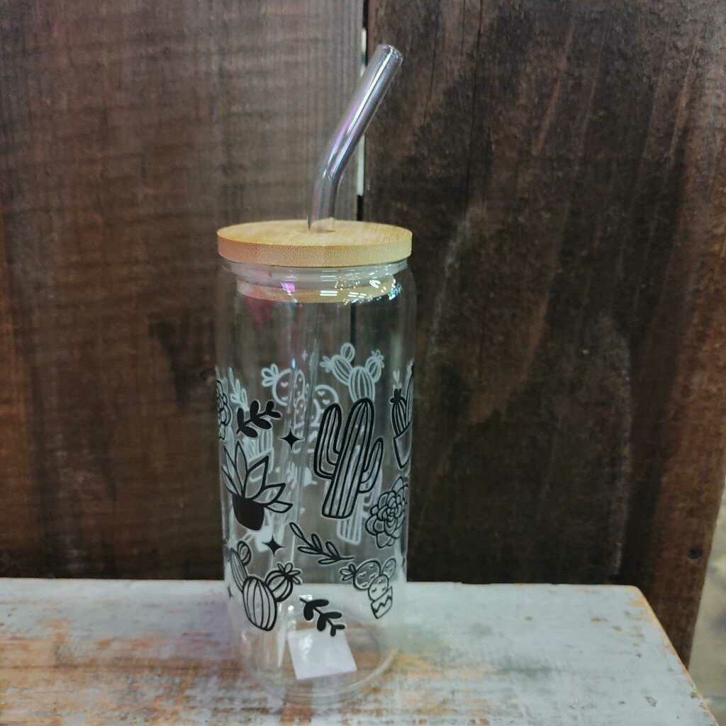 Tall Glass Drink Cup - B&W Succulents